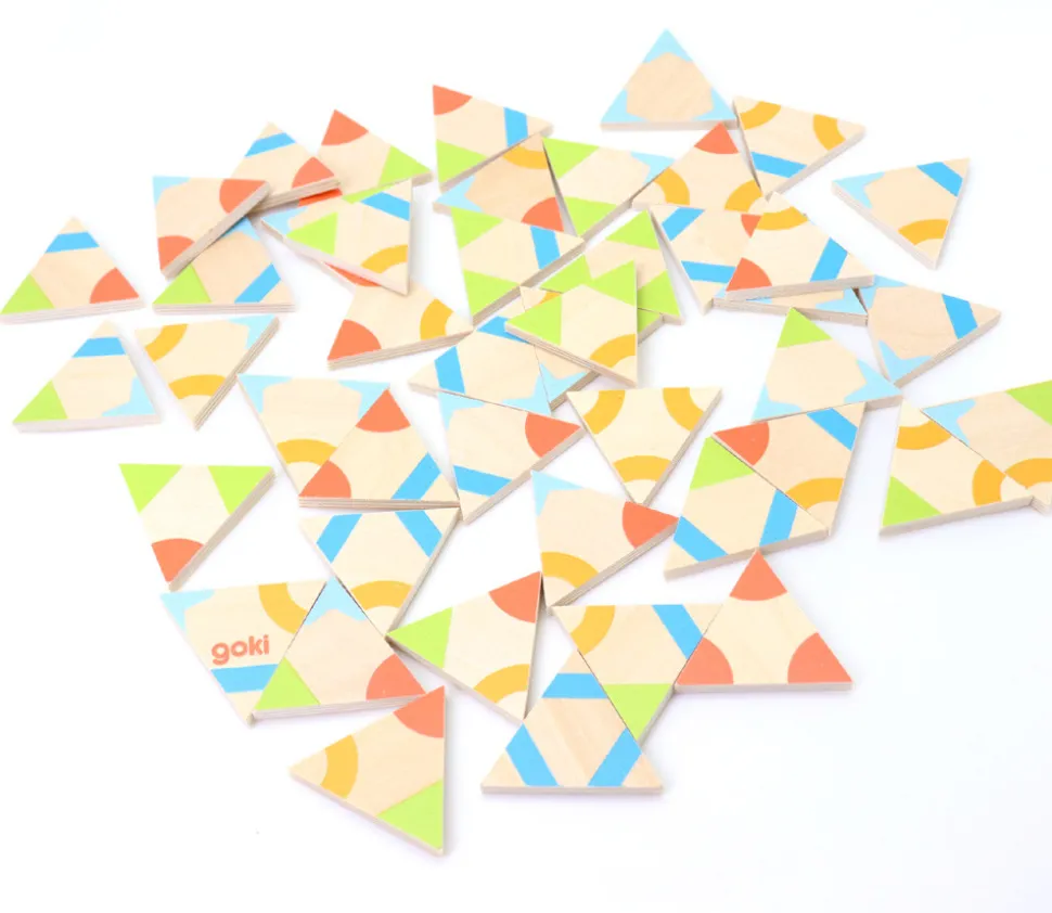 Tri-domino des couleurs en bois : jeu de dominos triangulaires. 45 Dominos triangles motifs géométriques colorés. Un beau produit tout en bois.