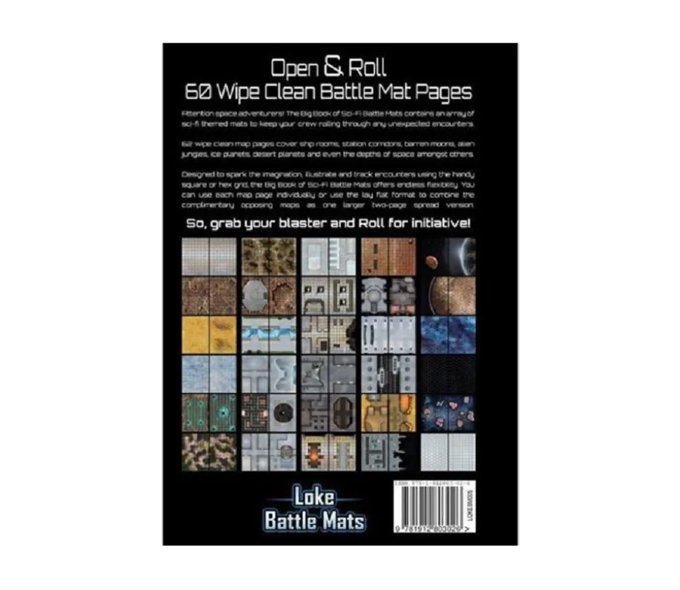 Livre A3 plateau de jeu Giant Book of Sci-Fi. 62 pages de plateaux de jeux avec différents décors. Super pratique pour varier les ambiances et jouer facilement partout. Son format A3, vous permet d’avoir un grand plateau de 42 x 60 cm une fois ouvert. Ces pages sont magnétiques (vous pouvez donc y poser des magnets) et sont également effaçables pour pouvoir indiquer vos déplacements ou actions/évènements dessus.