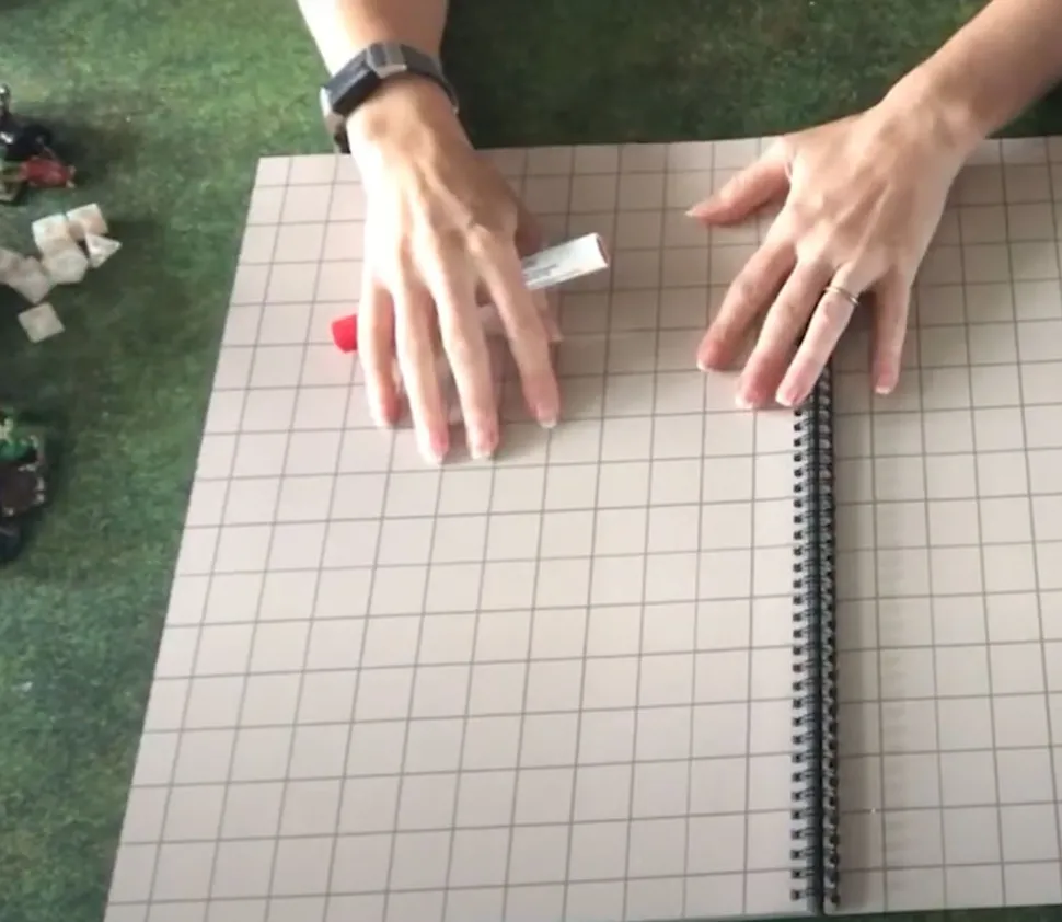 62 pages de cartes quadrillées (quadrillage de 2.5 x 2.5 cm) à poser à plat et à utiliser comme plateau de jeu sur 2 pages