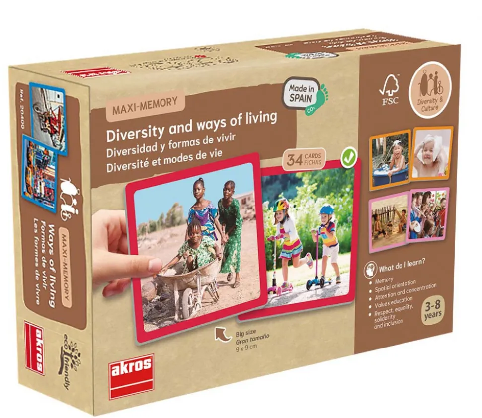 34 grandes cartes de 9 x 9 cm pour découvrir les modes de vie. Fabrication en matériau respectueux de l’environnement. Label FSC, issu de forêt en éco gestion.