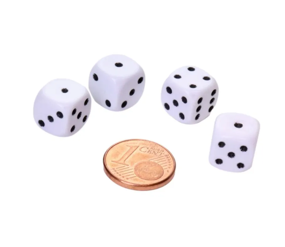 Petit dé à jouer blanc de 10 mm pour jeux de dés. Dé à points de 1 à 6 miniature