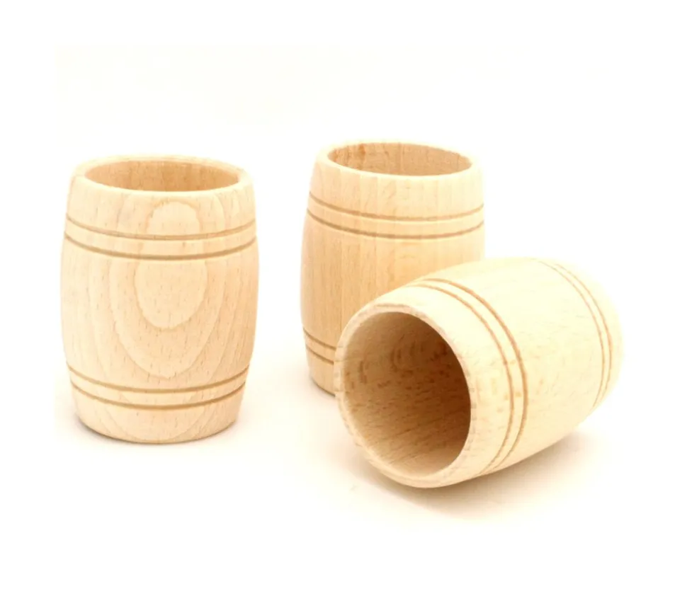 Mini tonneau en bois gobelet creux. Coffret en bois en forme de petit tonneau sans couvercle