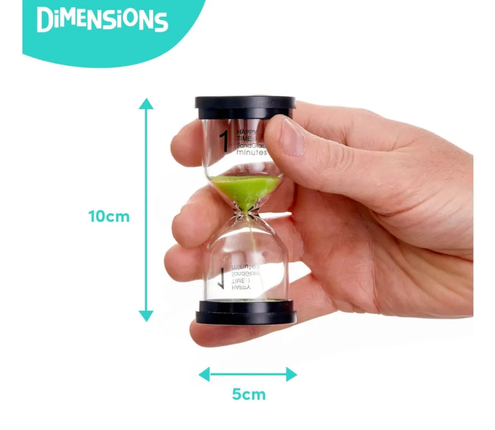 Pratique et bien visible avec sa hauteur d’environ 10 cm, vous pouvez choisir le sablier adapté en fonction de son utilisation : jeu de plateau, de rôle ou de société, cuisine, jeux de plein air, brossage des dents…. Le temps est indiqué sur le verre de chaque sablier en gros chiffre.