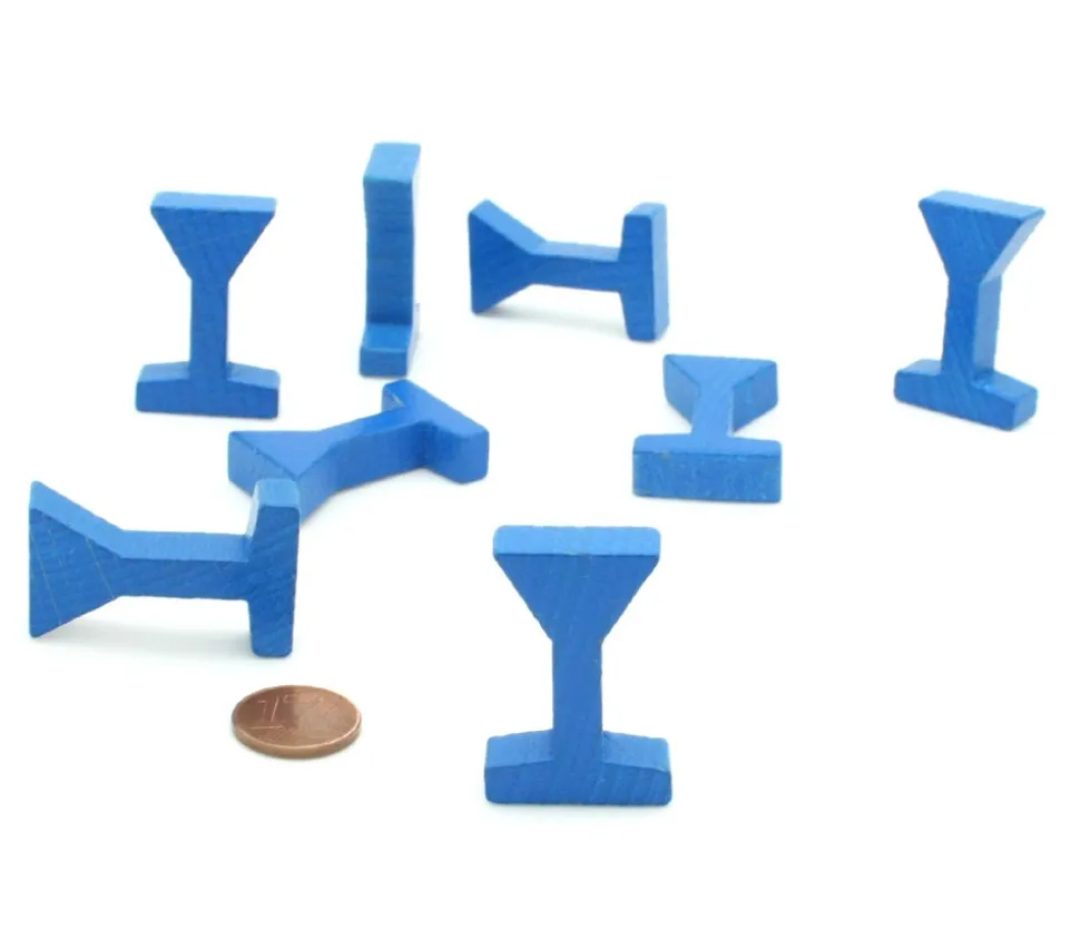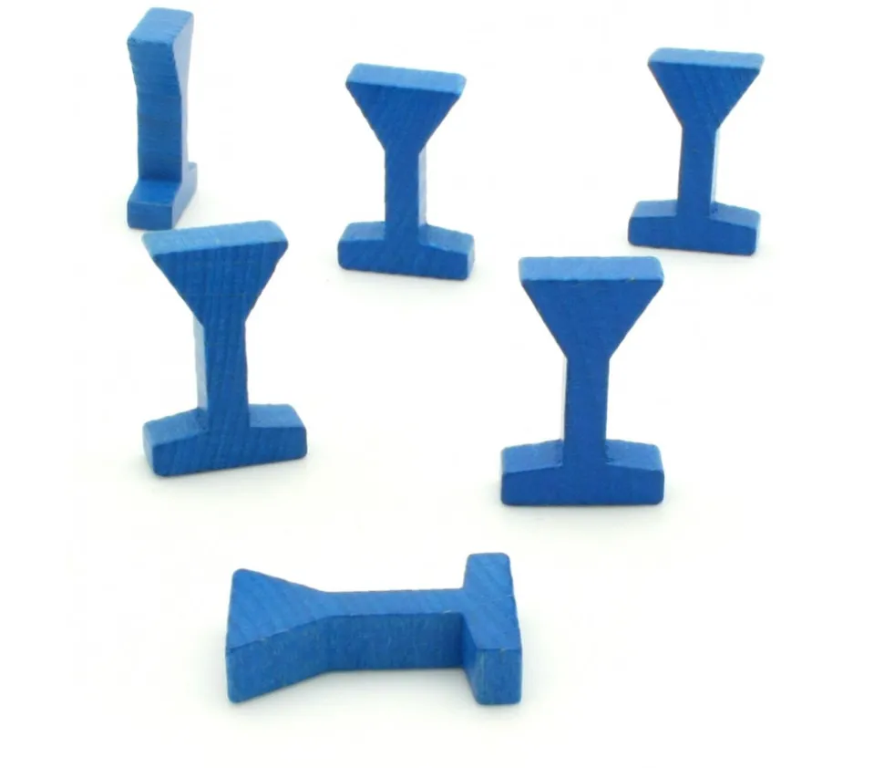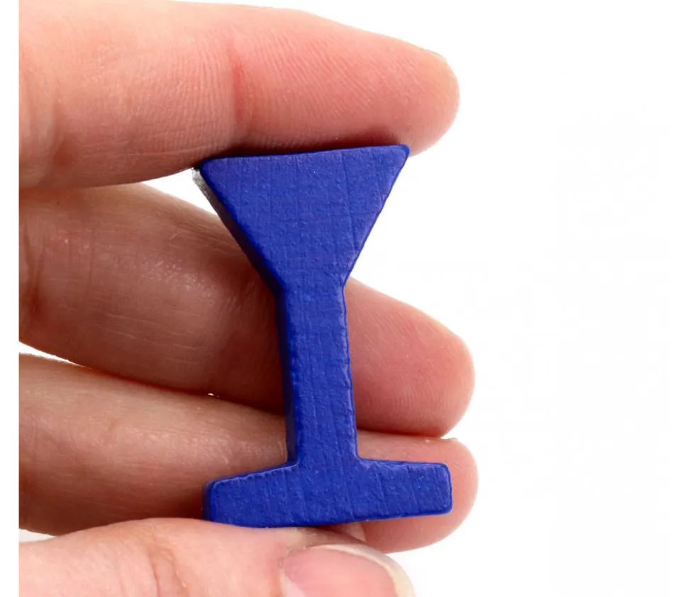 Pion de jeu bleu forme de panneau de signalisation ou forme de verre de vin. Mini pièce en bois à utiliser comme pions de jeux, maquettes ou décorations. Dimensions du pion de jeu 34 x 10 x 22 mm. Vous pouvez facilement le personnaliser en mettant un adhésif sur la partie haute du pion pour créer un panneau de code de la route