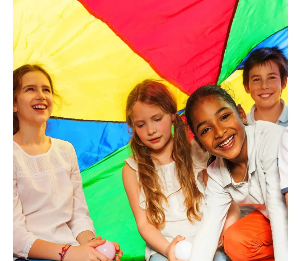 Plaisir garanti. Nos parachutes aux couleurs vives sont un grand succès. Lors de fêtes d’anniversaire, de mariage, de baptême… sous forme de jeux et de divertissements. Les enfants s’amuseront en les agitant, en formant des manèges ou en construisant des tentes.