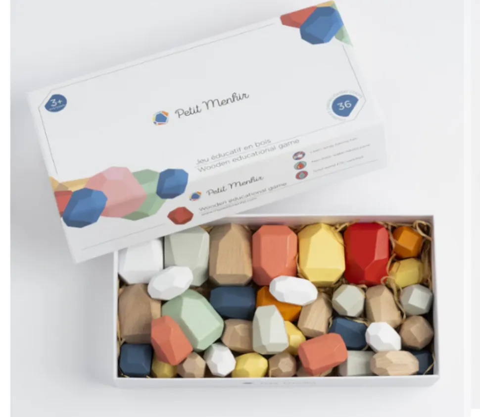 36 Menhirs Pastel en Bois de Hêtre – Jeu Éducatif et Sensoriel
