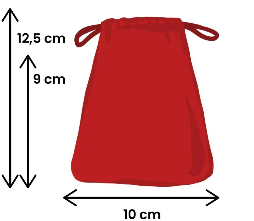 Dimensions de sac velours rouge opaque tissé : 100 x 125 mm (12.5 cm de hauteur et 10 cm de largeur)