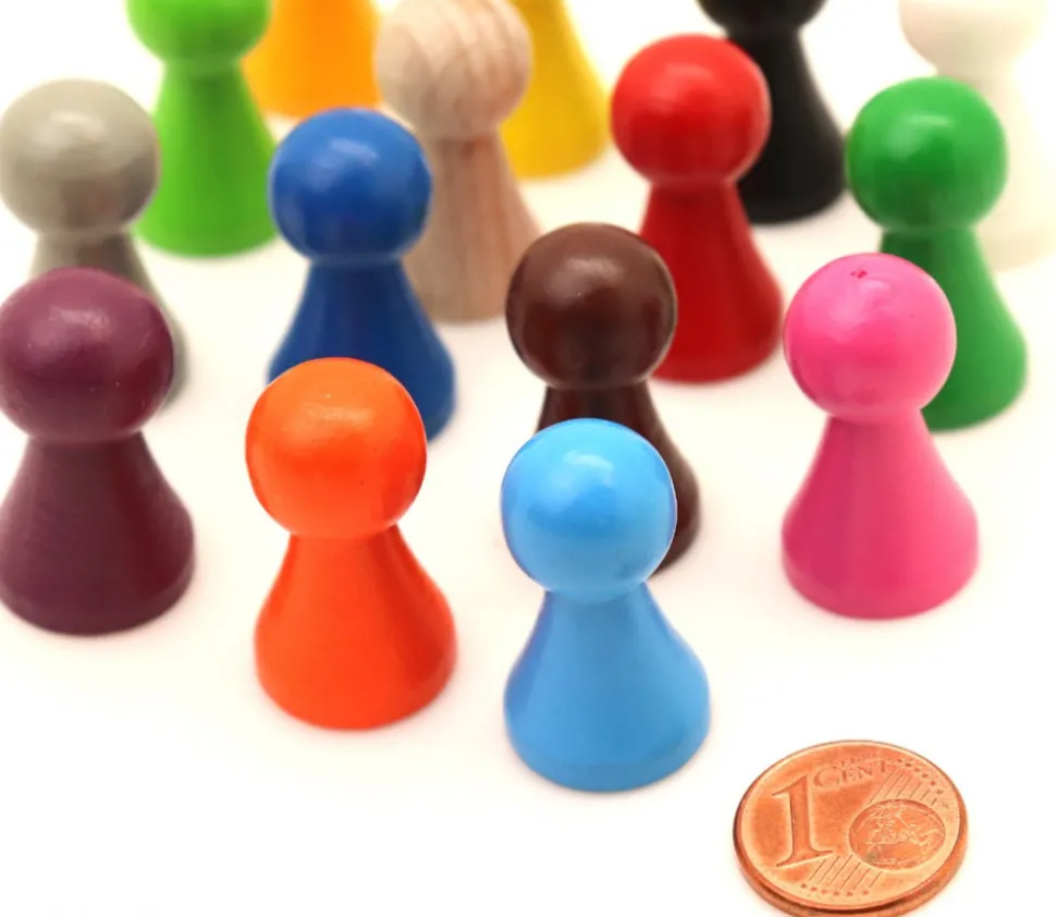 Pion de jeux en bois de 2.7 cm de hauteur et 1.5 cm de diamètre. Vente à l’unité. 15 couleurs disponibles à choisir : rouge, vert, jaune, bleu, blanc, noir, violet, rose, gris, naturel, vert clair, bleu clair, marron…