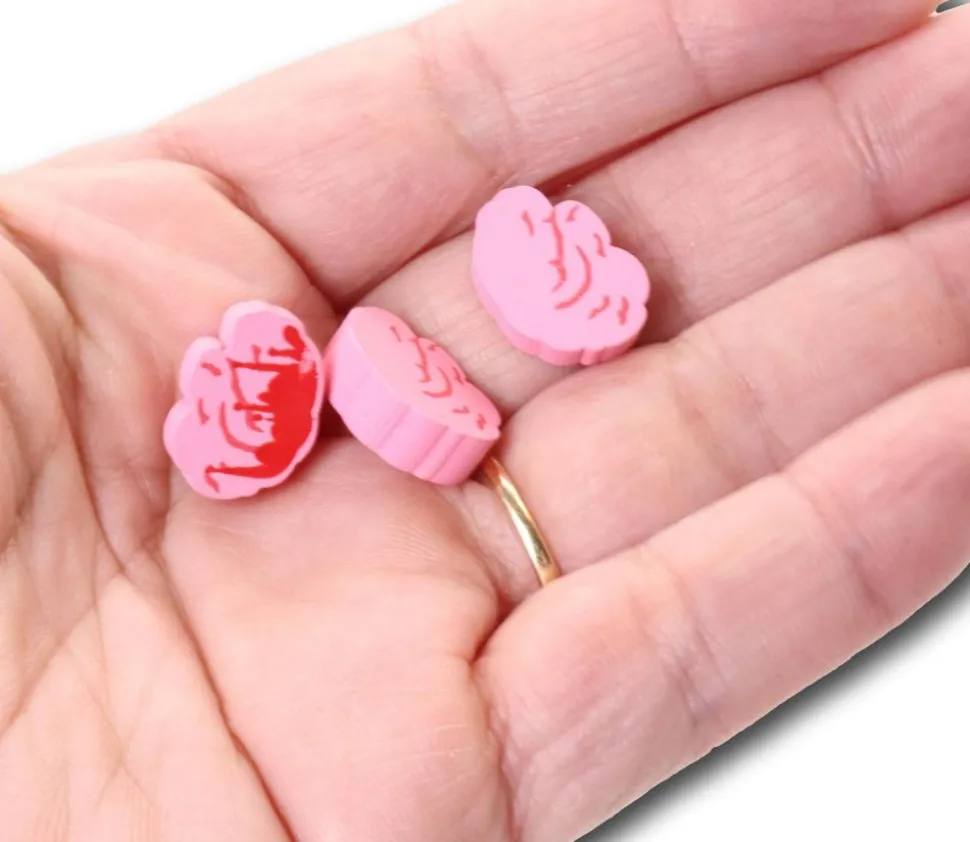 Pion cerveau en bois teinté en rose avec impression sur le recto et le verso.