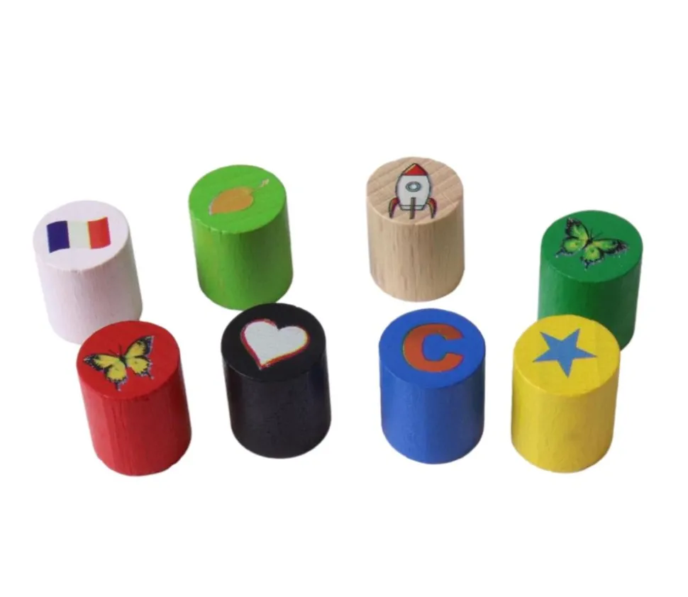 Ces pions en bois dont vendus à l’unité par couleur à choisir parmi : rouge, vert-clair, bleu, jaune, blanc, naturel ou noir.