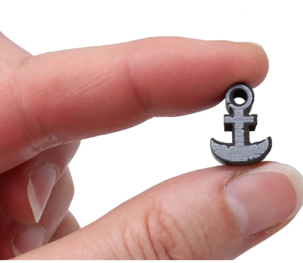Petite ancre miniature en bois avec impression grise sur le recto et le verso.