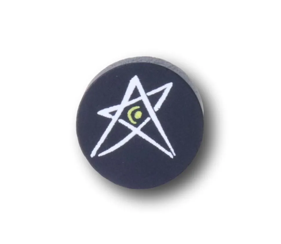 Jeton rond en bois avec un marquage sur les 2 faces Eldersign : signe des anciens mystérieux ressemblant à une étoile.