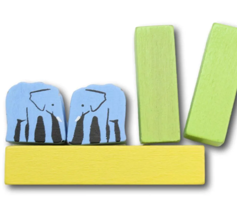 Vous pouvez associer cet éléphant à nos : serpent, zèbre, lion, phacochère, renard des sables, chameau… Vous pourrez créer des jeux de poursuite très sympathiques.