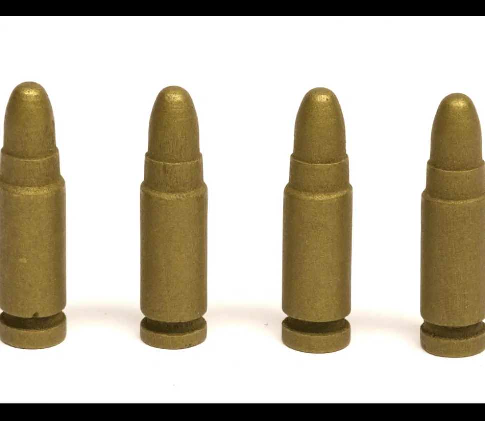 Pion en bois en forme de balle de fusil.