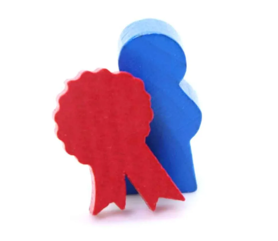 Pion cocarde médaille jaune de 20 mm de hauteur, 15 mm de largeur et 5 mm d’épaisseur. Pion pour jeux de société. Mini pièce de jeu en forme de cocarde. Vente à l’unité.