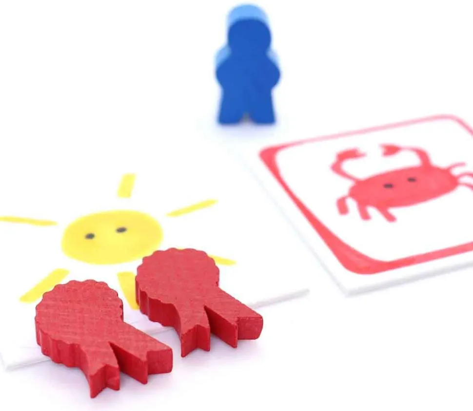 Pion médaille / cocarde. Jeton de jeux de société à utiliser comme pion de déplacement, récompense ou comptage. Pièce en bois teinté en jaune ou rouge