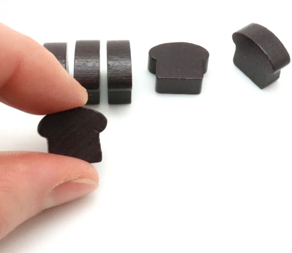 Pion pain de mie marron foncé en bois. Pièce en bois en forme d’aliment qui peut servir de ressources dans vos jeux. Hauteur du pion 13 mm et 16 mm de large. Epaisseur 6 mm. Accessoire de jeux ou de décorations pour les loisirs créatifs.