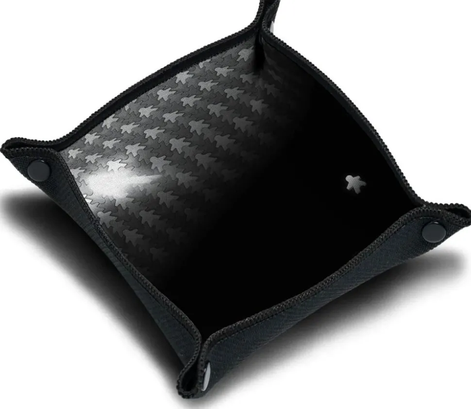 Petite piste de dés à jouer de 21 x 21 cm noire avec illustration : le meeple perdu.