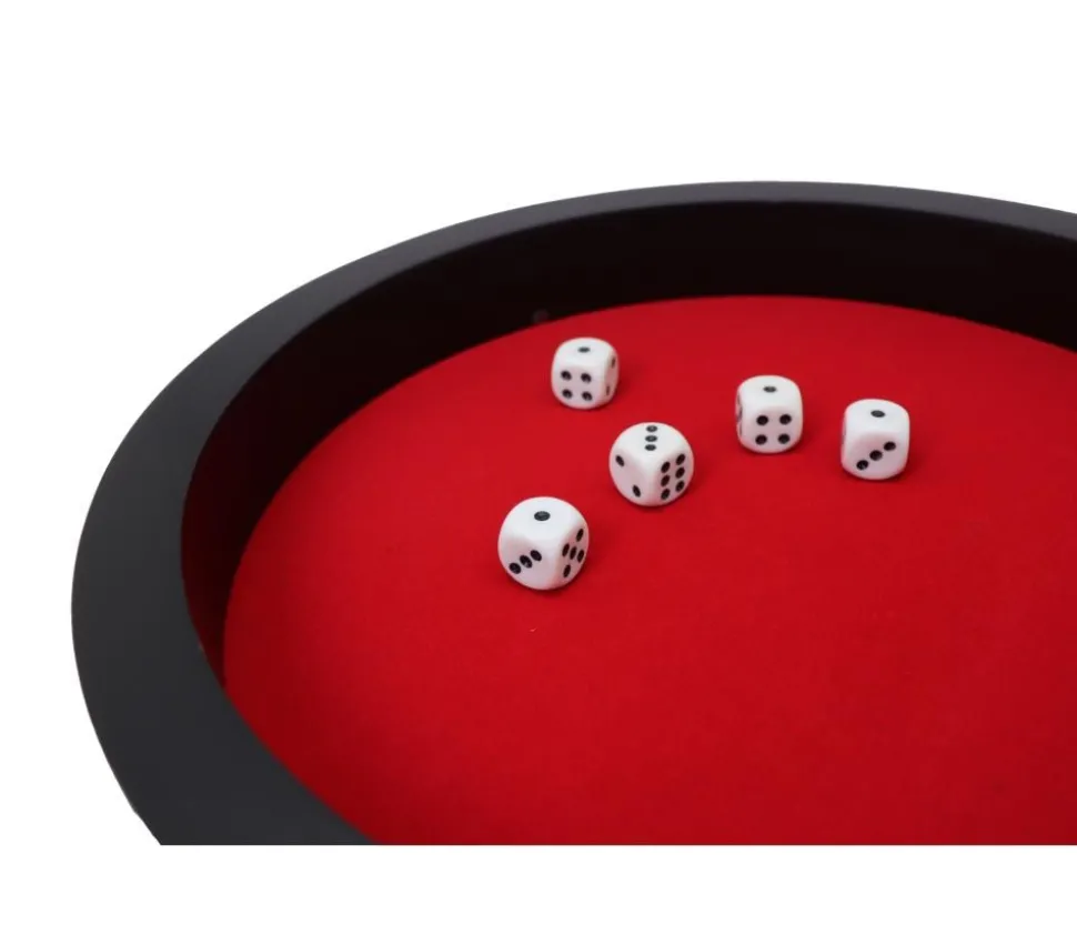 Tout pour le Jeu vous propose cette super belle piste rouge et noir très classe. Piste de dés idéal pour un cadeau. Piste de jeu de 34 cm (dimensions extérieures) livrée avec 5 dés de 15 mm de côté.