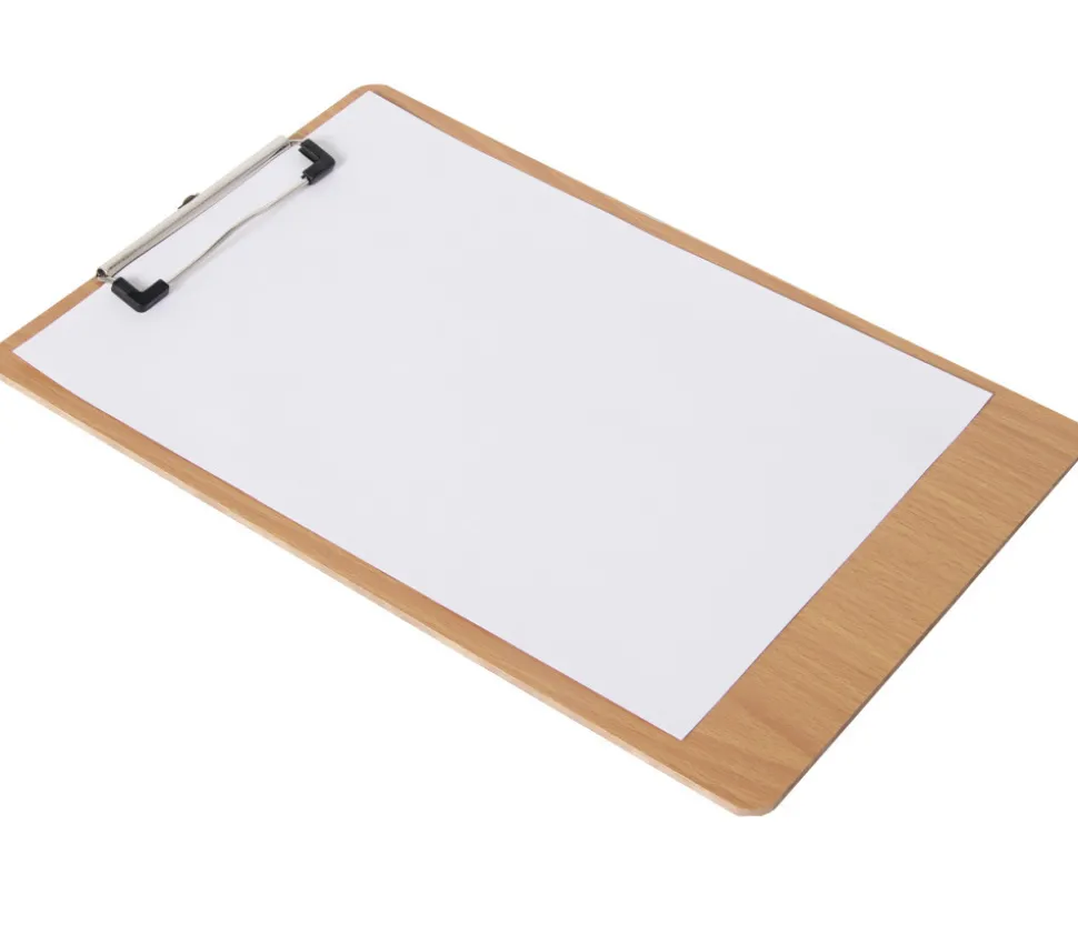 Tablette en bois avec clip sur le dessus pour feuille A4