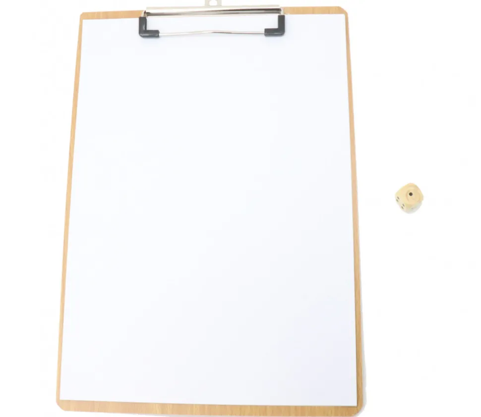 Livré sans feuille. Tablette d’écriture très pratique pour noter les points dans vos animations de jeux. Porte bloc.
