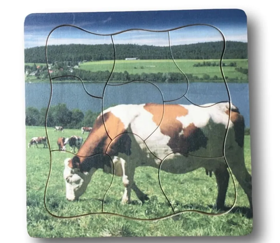 Puzzle 9 pièces dans un cadre de dimensions : 148 x 148 x 11 mm