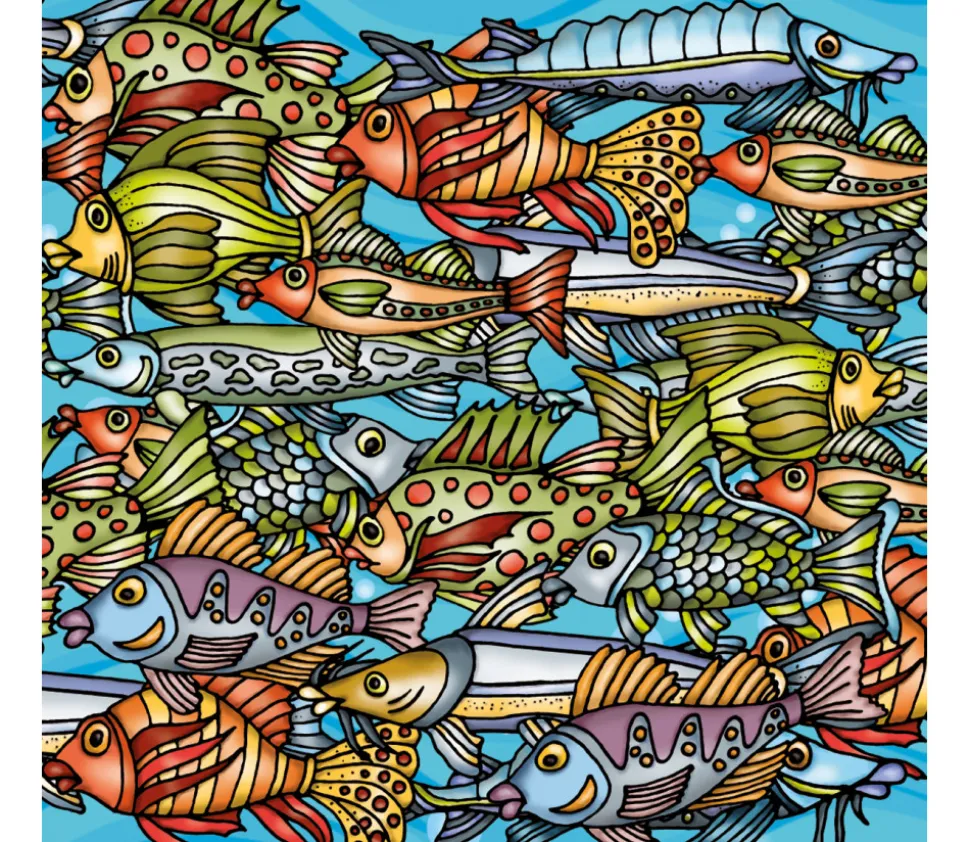 Magnifique petit puzzle de 72 pièces représentant des poissons multicolores design. Une belle illustration colorée et originale pour ce puzzle de belle qualité. Q-Puzzle Picoli. Un puzzle coloré avec des poissons rigolos.