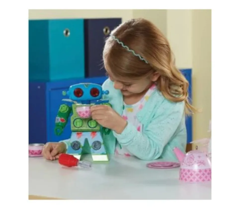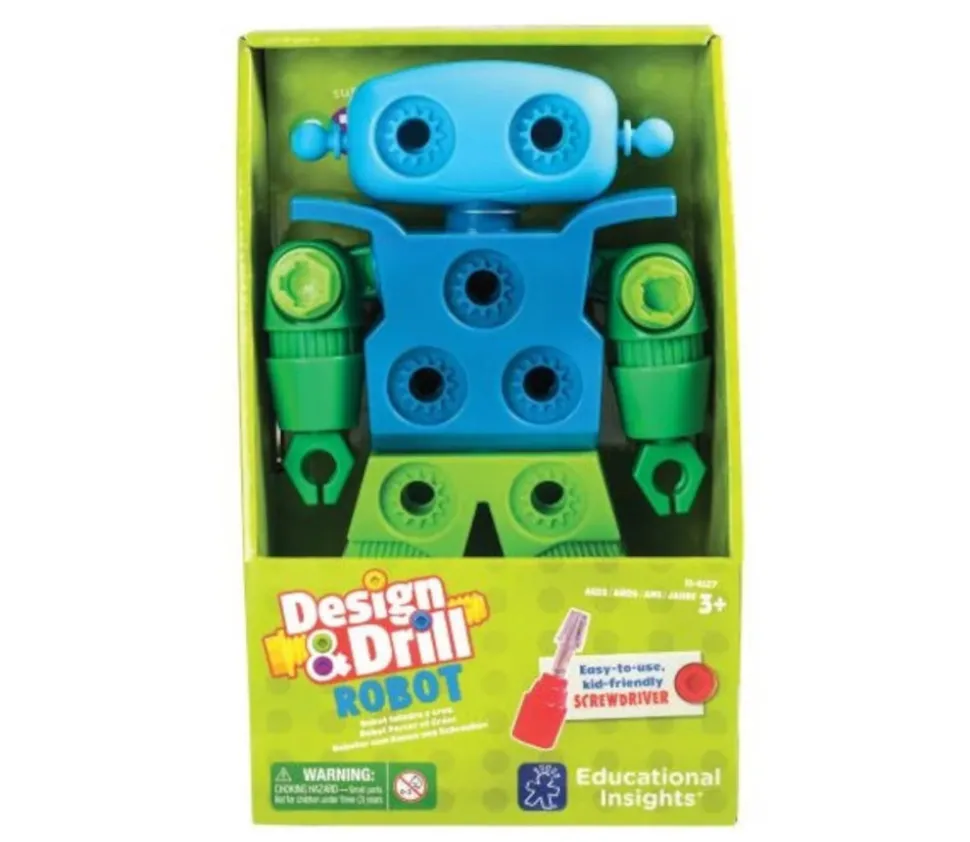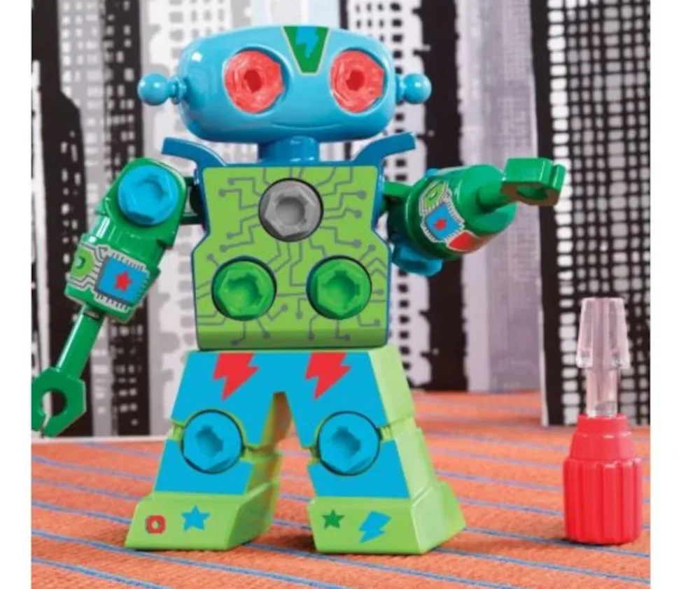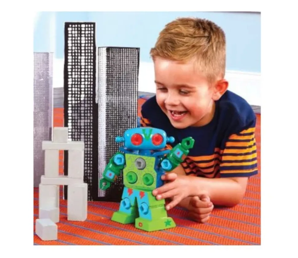 Robot à visser avec tournevis. Visser les boulons à l’aide du tournevis fourni pour customiser ce drôle de robot. Super matériel pour la motricité fine pour créer un robot personnalisé. Kit de construction mécanique. Un jouet attirant pour les enfants. Robot de 20 cm en plastique avec 15 boulons, 1 tournevis et des stickers de personnalisation. Matériel approuvé STEM, il permet de travailler les compétences moteurs, d’expérimenter, essayer et comprendre. Robot Learning ressources. Robot robuste avec tête, bras et haut du corps pivotants.
