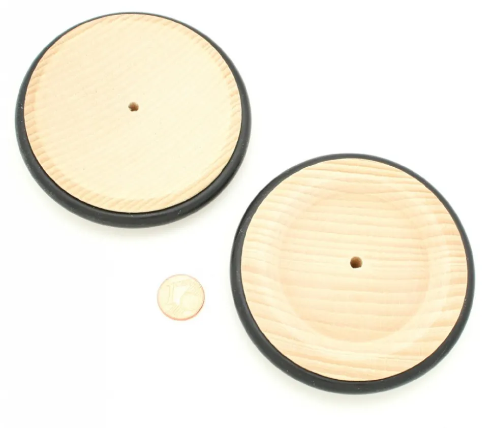 - Roue de 8.4 cm de diamètre (centre en bois hêtre et tour en caoutchouc noir)