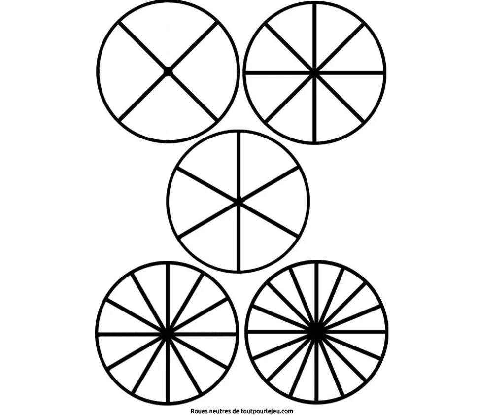 Roues vierges sans dessin ni numéro pour personnaliser sur le thème de votre choix. Jeu de roues à télécharger gratuitement. Roue avec des portions différentes à imprimer facilement sur une feuille A4. Créez vos jeux de société personnalisés ou vos supports pédagogiques.