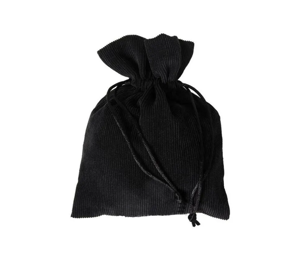 Poche en velours noir épais de 180 x 130 mm avec ficelle de serrage. Sac boures en tissu velours tissé avec cordon pour ranger vos accessoires.