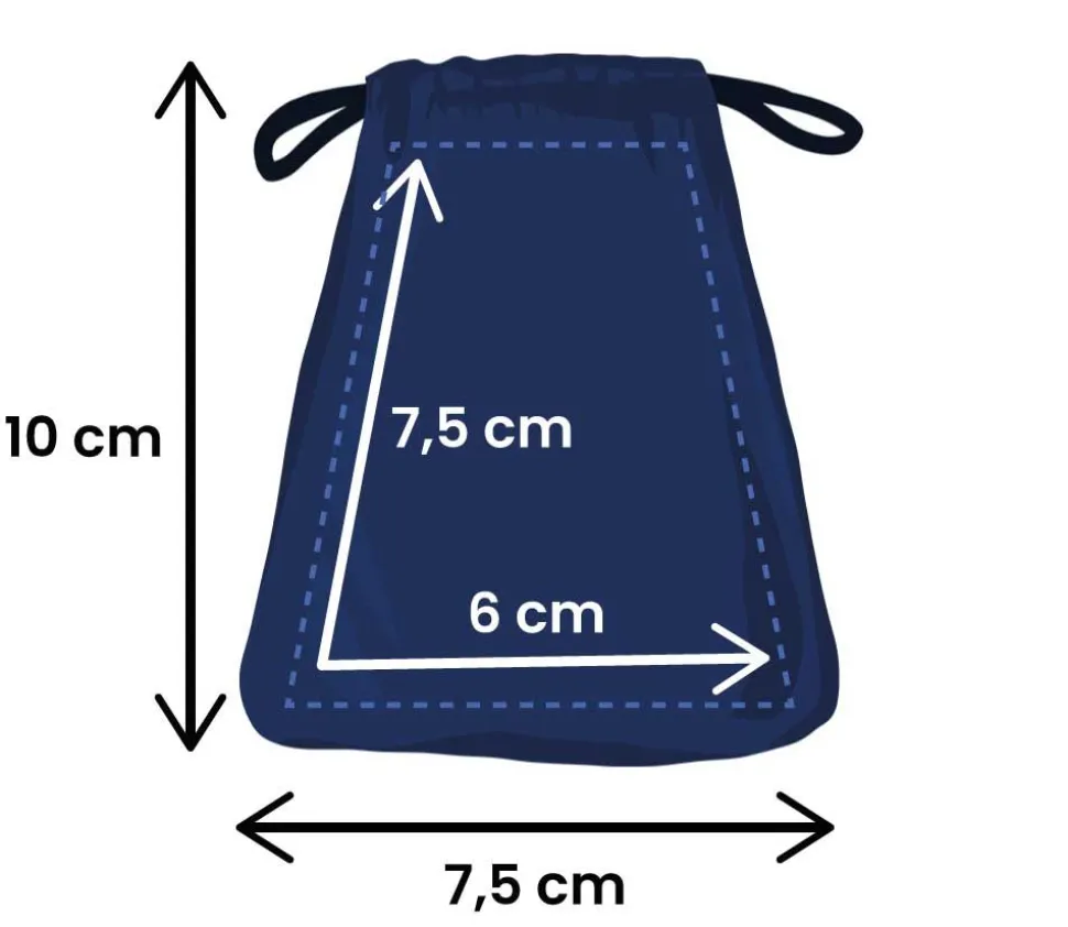 Dimensions de ce sac en tissu effet velours suédine : 85 x 70 mm (8.5 x 7 cm)