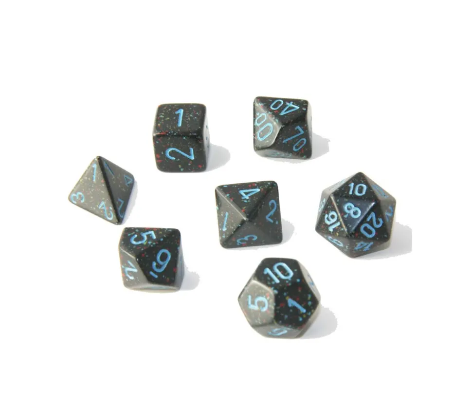 Le set de 7 dés mulitfaces ciel étoilé comprend :