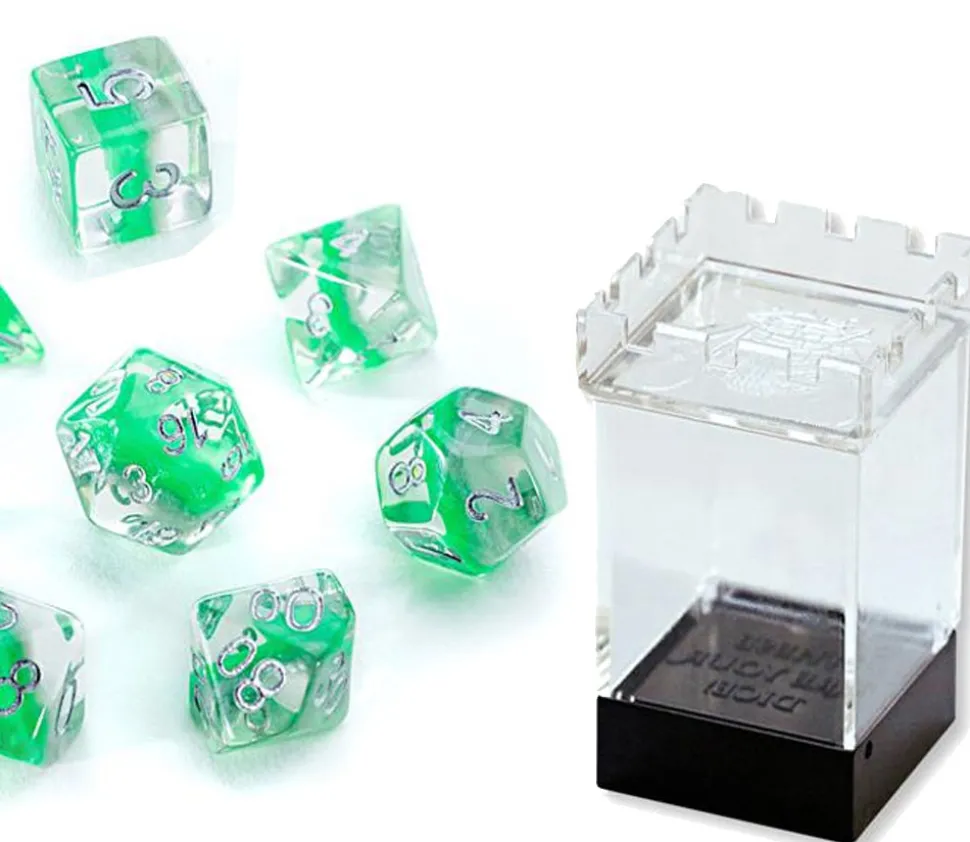 Dés transparents avec intérirur vert.