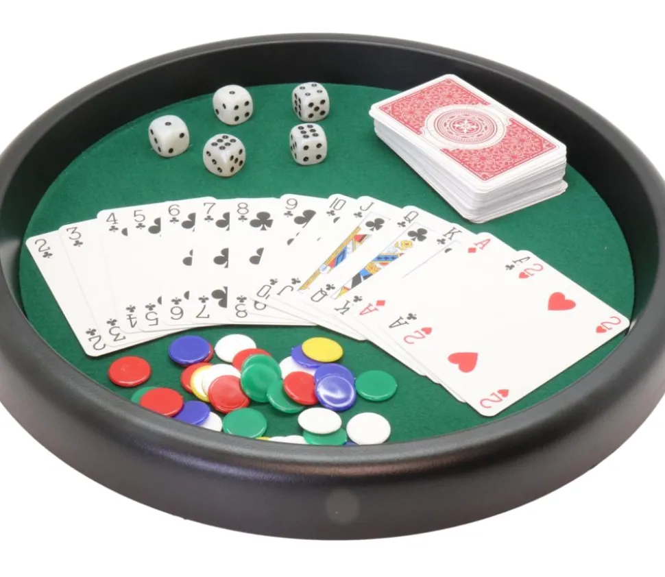 Set avec des nombreux accessoires de jeux pour jouer à tous vos jeux de société traditionnels de dés et de cartes.
