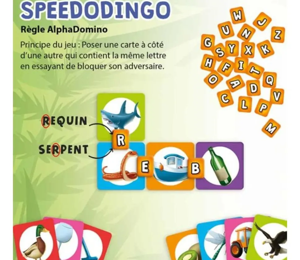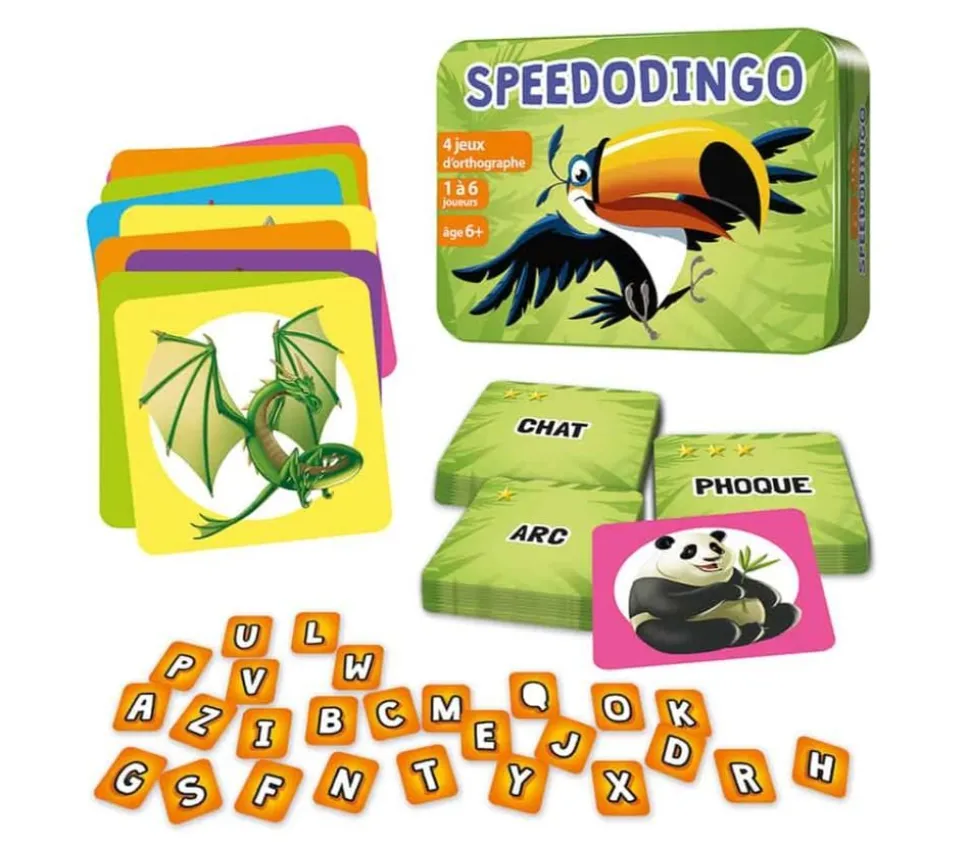Speedodingo CP CE1 CE2. Un jeu pour capter l’attention des enfants sur l’orthographe des mots. Des règles de jeux simples, variées et dynamiques.