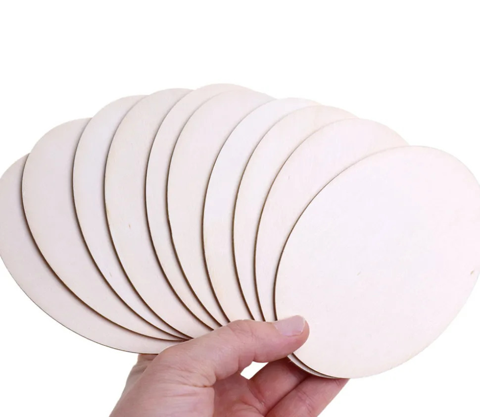 Support en bois brut sans traitement de forme ovale à décorer.
