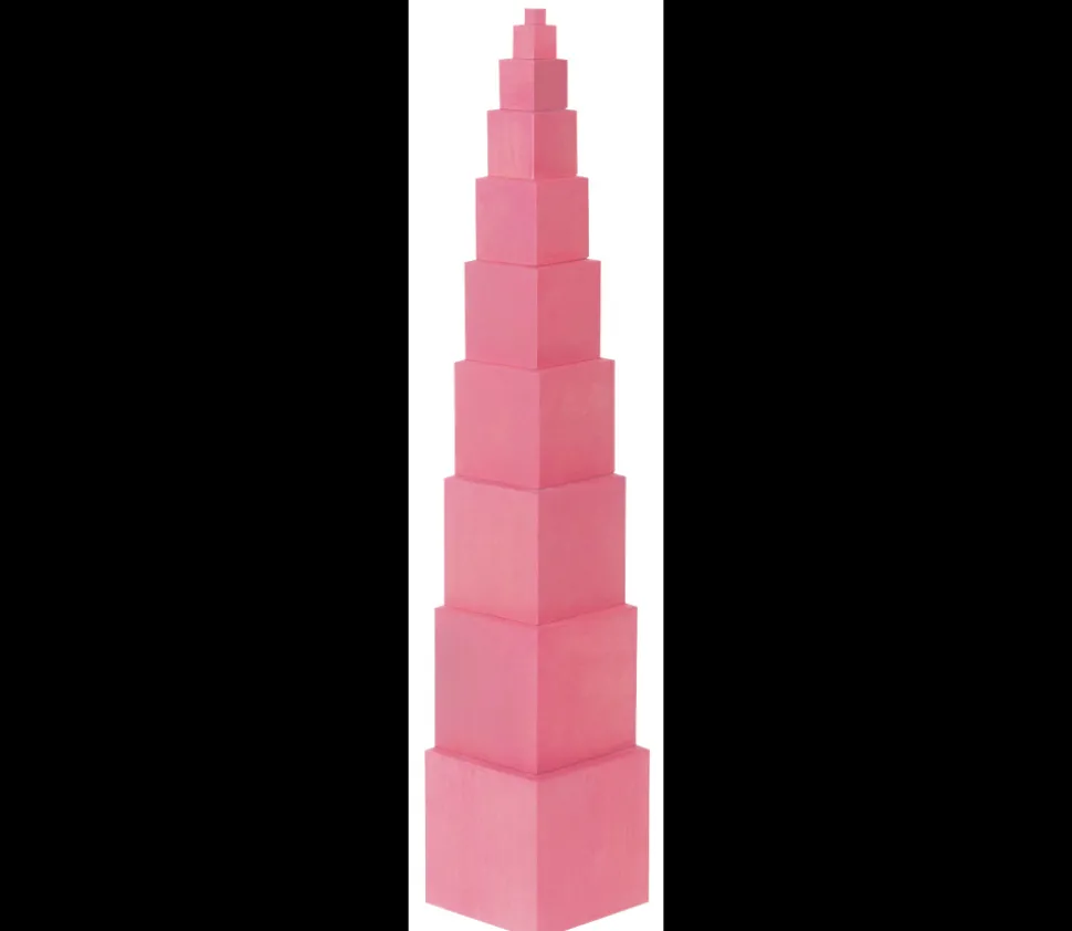 Tour Rose Montessori composée de 10 cubes en bois plein :
