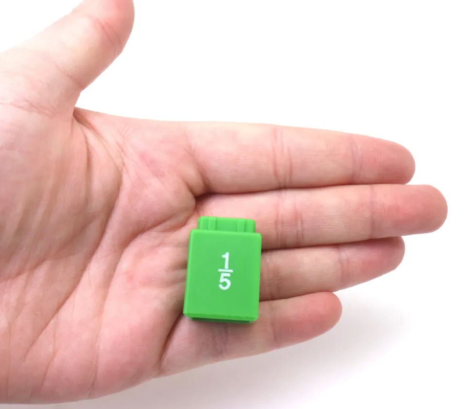 Set de gros cubes et barres de fractions pour apprendre les décompositions des premières fractions. Outil pédagogique avec pièces encastrables pour aborder les notions de fractions, pourcentages, portions, parts, nombres décimaux…