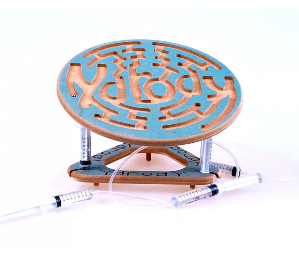 YDRODY, jeu de labyrinthe géant en bois pour jouer à faire avancer la bille avec des seringues remplies d’eau. Facile à monter et à utiliser.