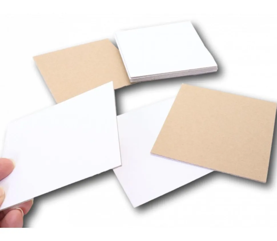 10 tuiles cartes de jeu de 10 x 10 cm sur du carton rigide recouvert blanc d’1 côté (environ 1.5 mm d’épaisseur).