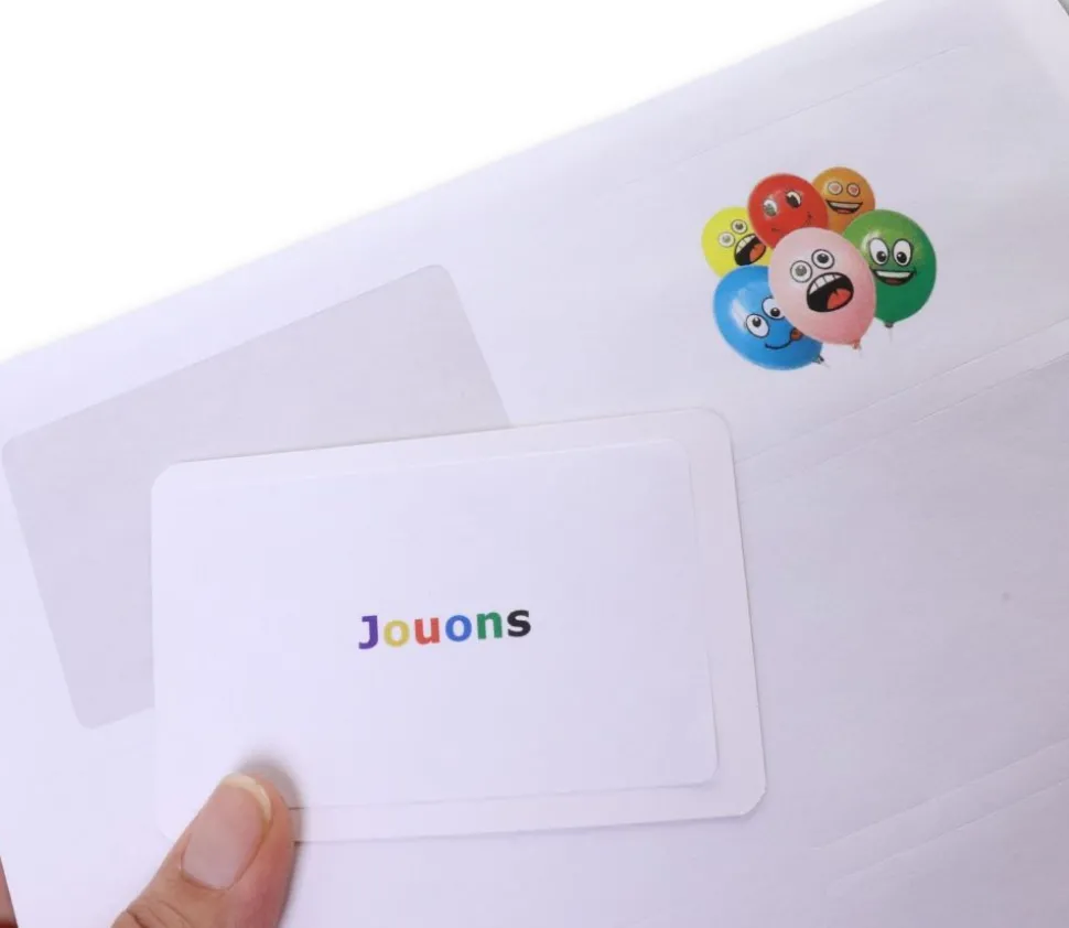 Super pratique, vous créez votre visuel sur votre ordinateur, vous l’imprimez directement sur votre feuille , vous les collez sur vos cartes à jouer.
