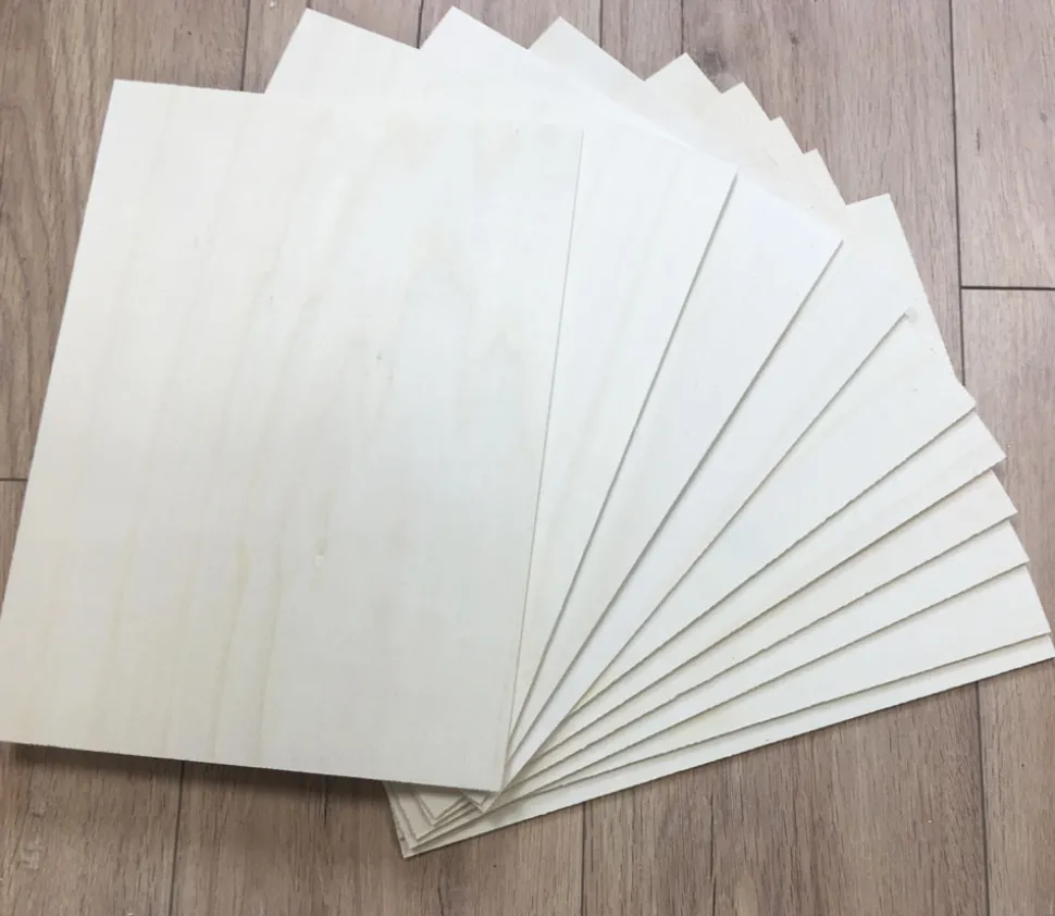 Petite planche lisse en bois clair contre plaqué que vous pouvez découper ou décorer pour créer des objets personnalisés en bois.