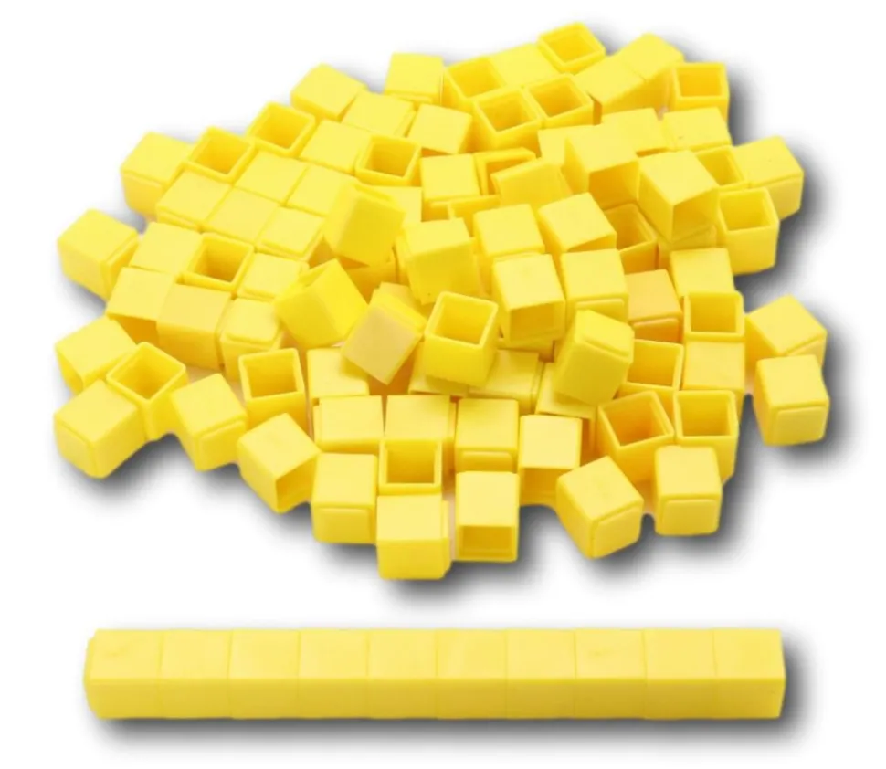 - 100 cubes d’unité de 1 x 1 x 1 cm : 100 mini petits cubes jaunes