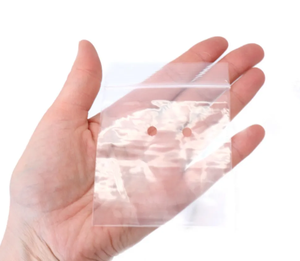 Set de 100 mini mini sachets en plastique transparent refermable zip de 57 x 57 mm. Mini Sac zip pour ranger vos petites pièces de jeux. La solution de rangement pas cher et pratique. Vous pouvez ranger 6 mini pions de jeux ou 4 dés de 16 mm. Sachet zip plastique refermable. Ces sachets ont un petit trou d’aération et n’ont pas de bande blanche inscriptible.