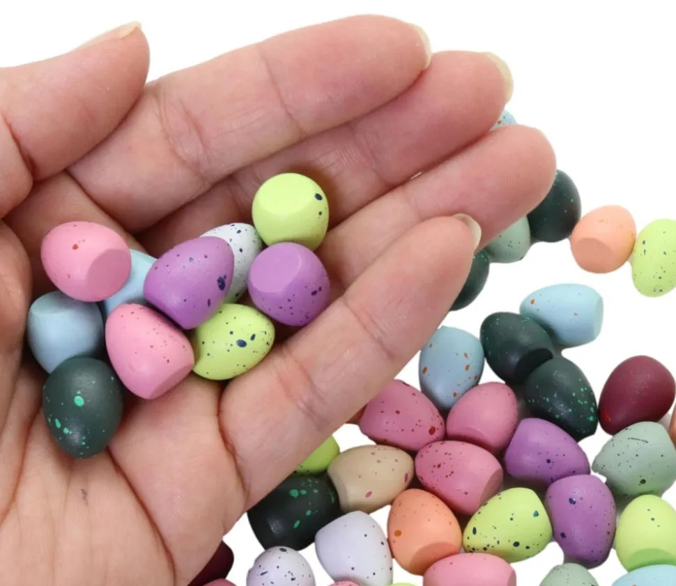 Lot de 100 mini oeufs en bois peints mouchetés de 10 couleurs différentes assorties