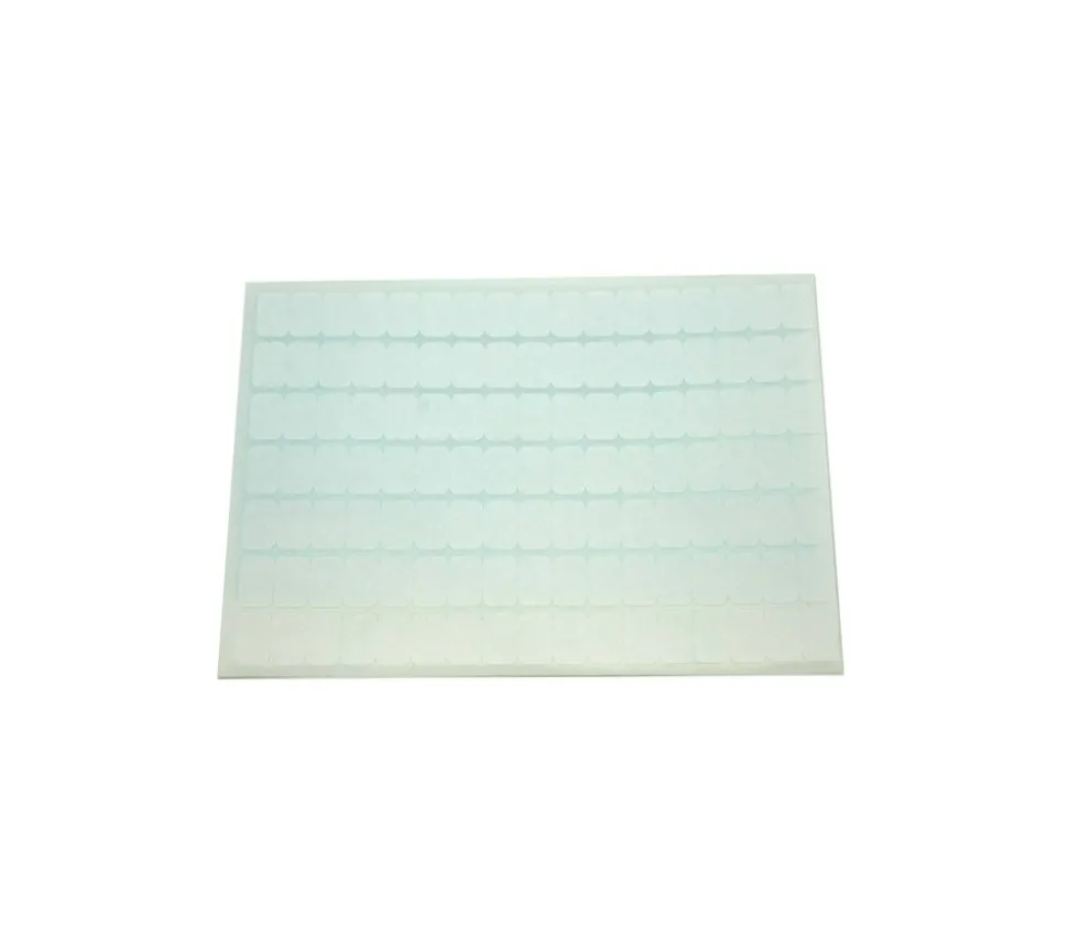Feuille taille A5 avec 112 pastilles rectangles de 1.2 x 1.83 cm.