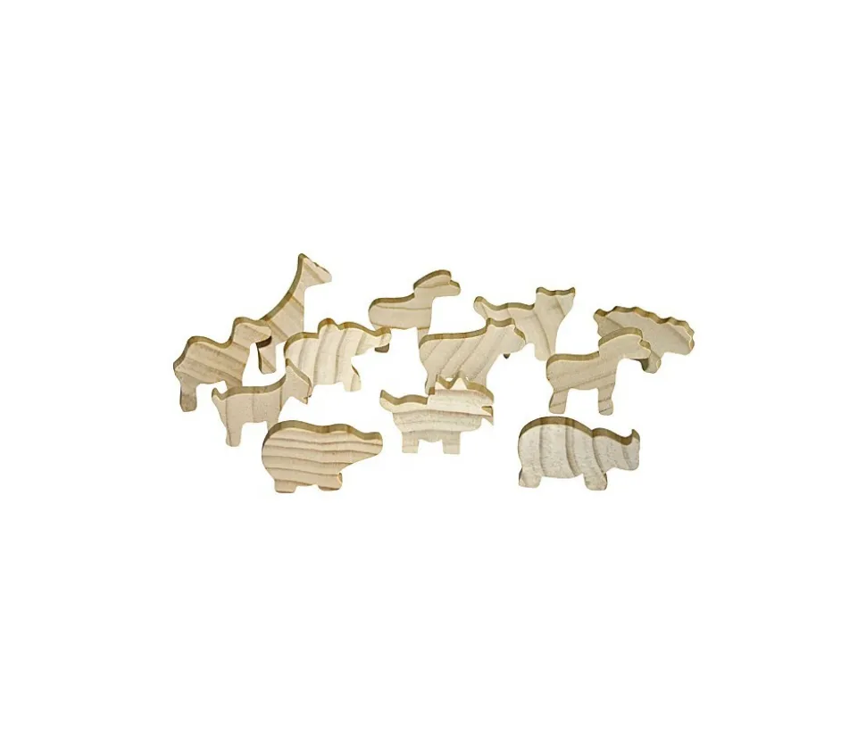 Lot de 12 animaux en bois à peindre. Pièce à décorer en bois représentant différents animaux.