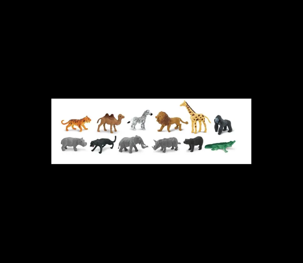 Tube de figurines animaux Sauvages en plastique pour enfants et jeux comprenant : 1 éléphant, 1 zèbre, 1 tigre, 1 hippopotame, 1 crocodile, 1 gorille, 1 rhinocéros, 1 ours brun, 1 girafe, 1 jaguar, 1 chameau, 1 lion.