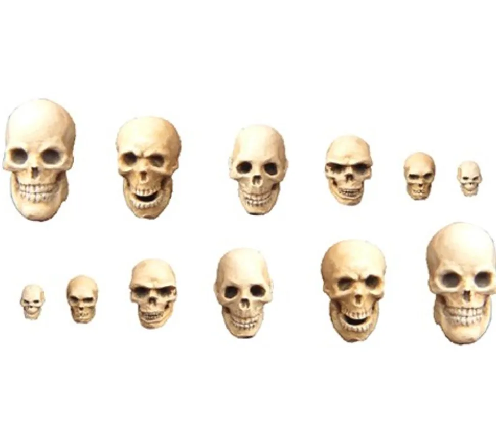 Ce kit comprend 12 têtes de mort de différentes tailles de 3 à 10 mm.